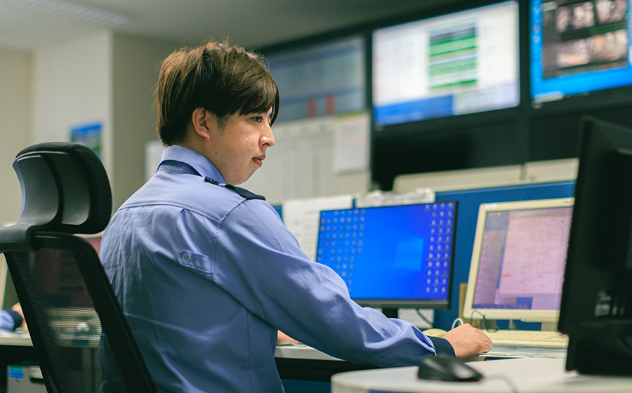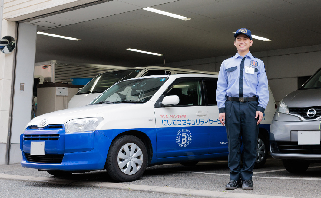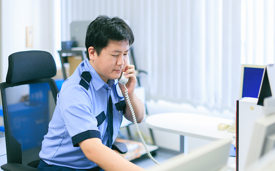 異常を検知した時は、対象施設の最寄りに待機する警備員が駆け付け異常の有無を点検するサービスです。