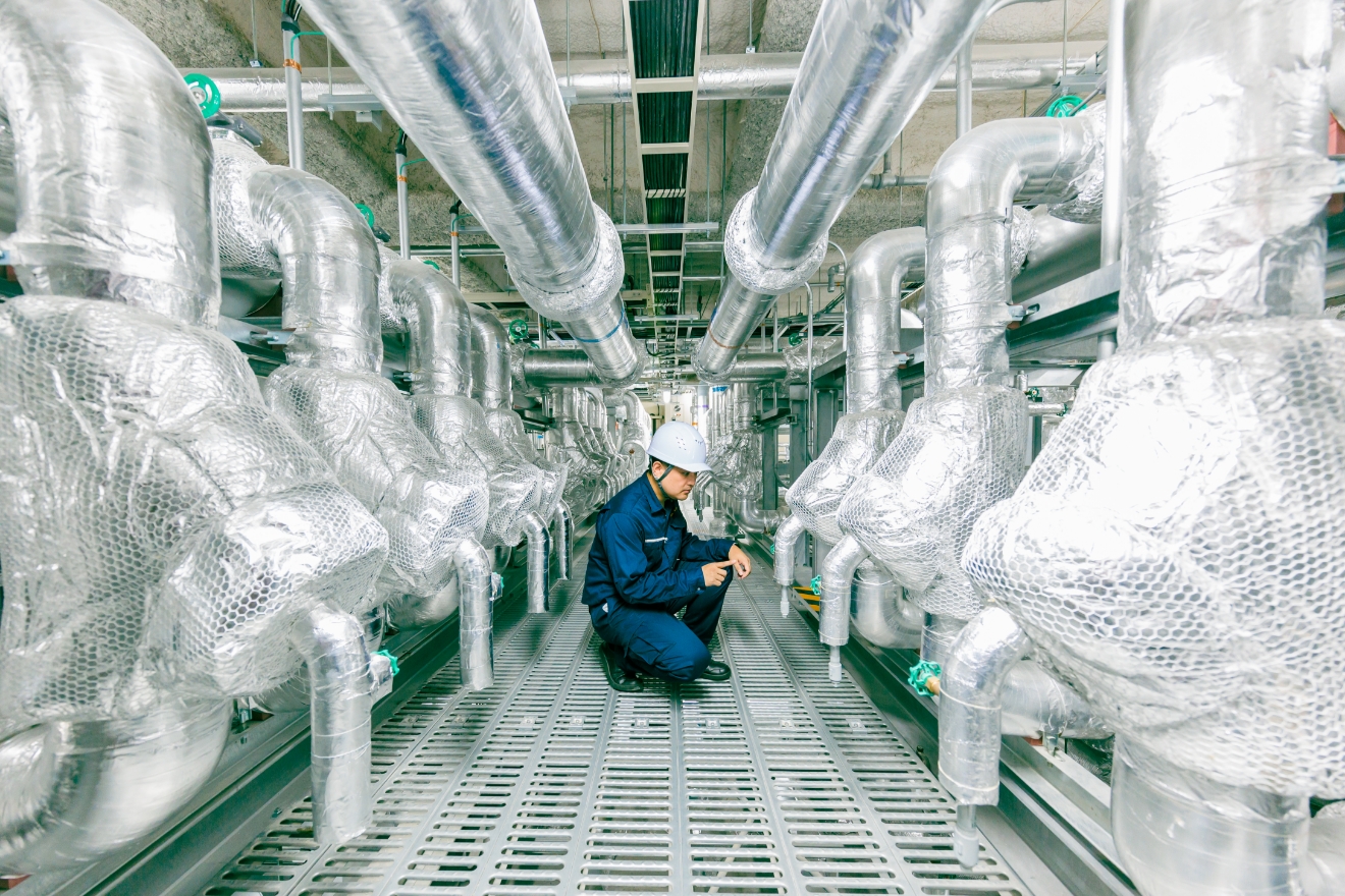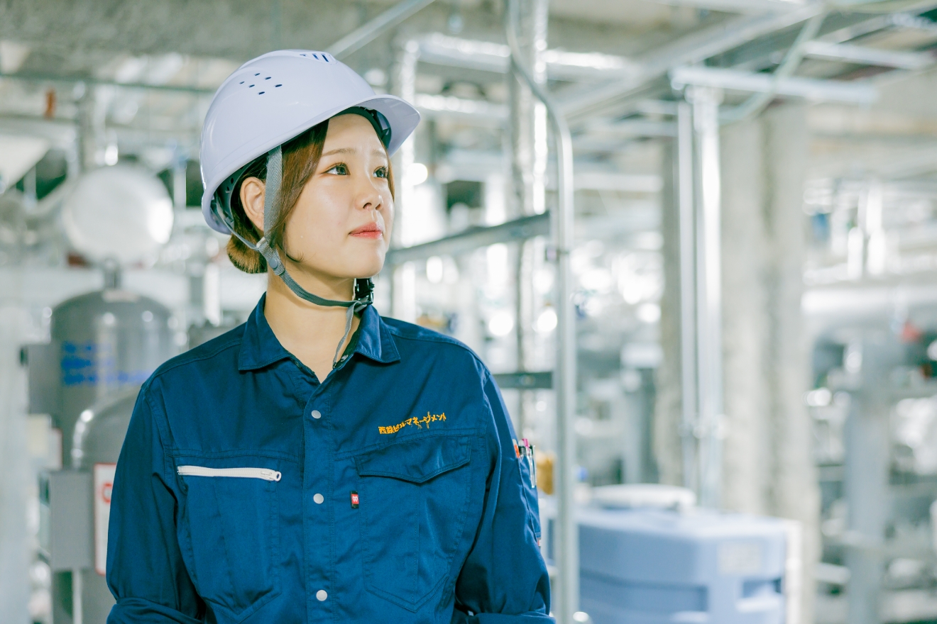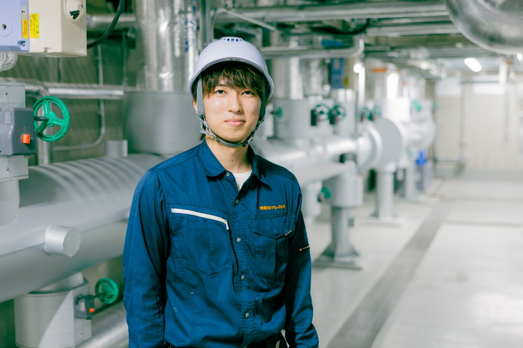 普段は西鉄イン福岡ビルに常駐し、設備管理の業務に携わっています。私が担当しているのは、客室のメンテナンスや熱源設備の点検です。ボイラーや電気室、また夏の時期に館内を冷房するために使われる大型冷凍機の巡回点検などが主な仕事になります。