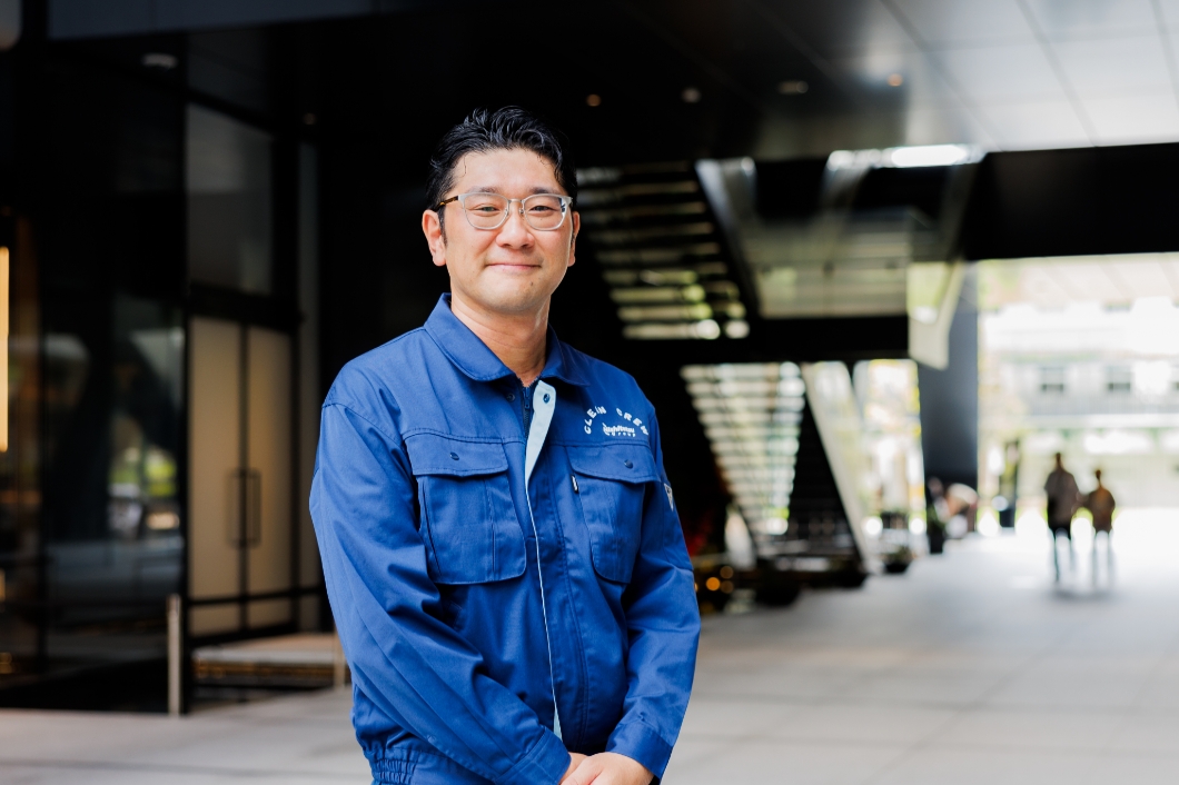 天神エリアでオフィスビルの清掃管理業務を担当しています。施設の清掃業務・品質管理のみならず、お客様(テナントやオーナー)とのやり取り、清掃協力会社との折衝、事故やトラブル発生時の対応などが主な仕事です。また、新しいテナントが増えたときは、各テナントを回って清掃業務の提案から受注対応まで行います。