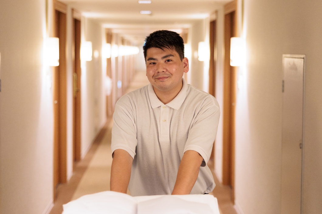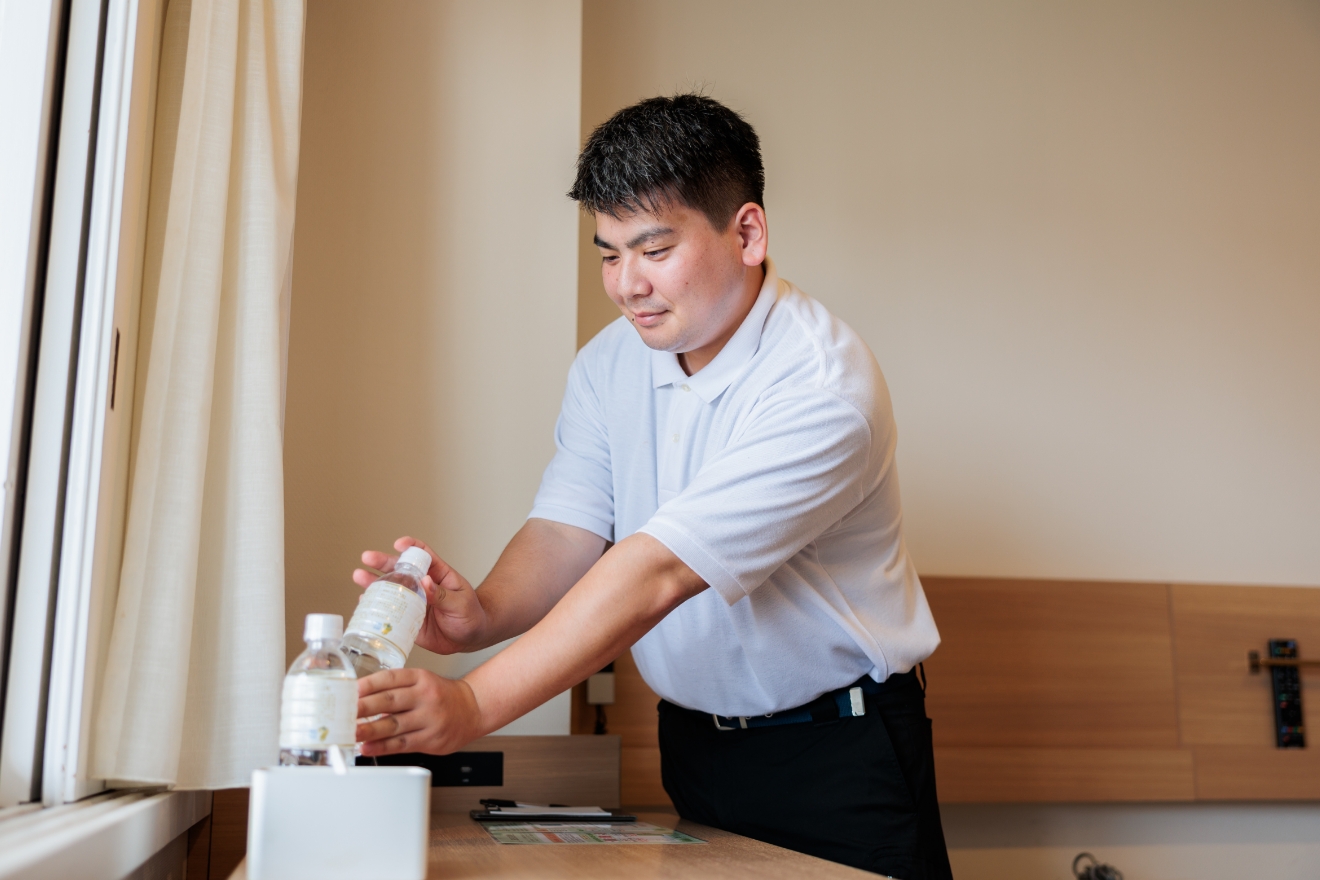 入社後、設備管理部へ配属となりましたが、2023年度からホテル清掃部に異動してきました。西鉄イン福岡に配属されたのは、設備管理部にいたときから応援に行っており、馴染んでいたからかもしれません。まだ覚えることは多いですが、仕事にはだいぶ慣れてきました。