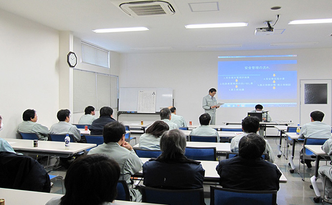 年に3回開催し、法令の変更点や安全、衛生管理についての説明や交通事故防止のための講習や防火訓練などを行います。